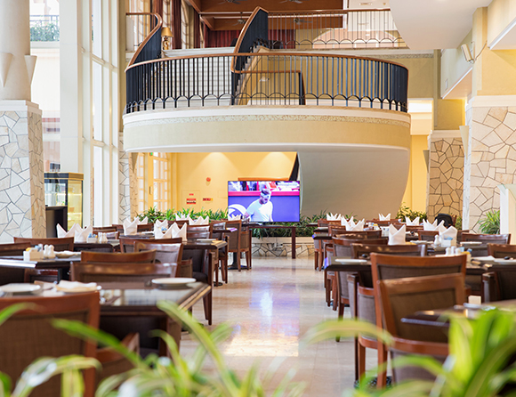峰景酒店擁有獨具潮州特色的御潮軒中餐廳和西式餐廳芳菲咖啡廳,為您提供特色潮州菜及各式經(jīng)典美食。餐廳落地窗通透明亮,座位寬松舒適,環(huán)境優(yōu)雅靜怡,您在品嘗美味的同時還能欣賞到怡人的球場風光。在這里,舒心的用餐環(huán)境,專業(yè)的服務態(tài)度,美味的菜系,讓您享受輕松怡人的愉悅時光。